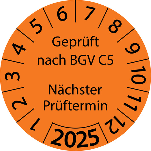 Mehrjahresprüfetiketten, Nächster Prüftermin, DGUV Vorschrift 3, Startjahr: 2025 aus Papier oder Plastik