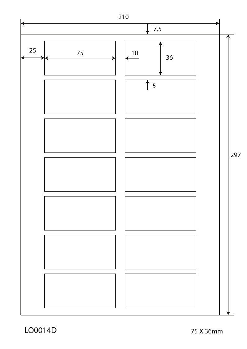 1400 Universaletiketten 75x36mm, auf 100 Din A4 Bogen, matt, selbstklebend LO-0014-D-70