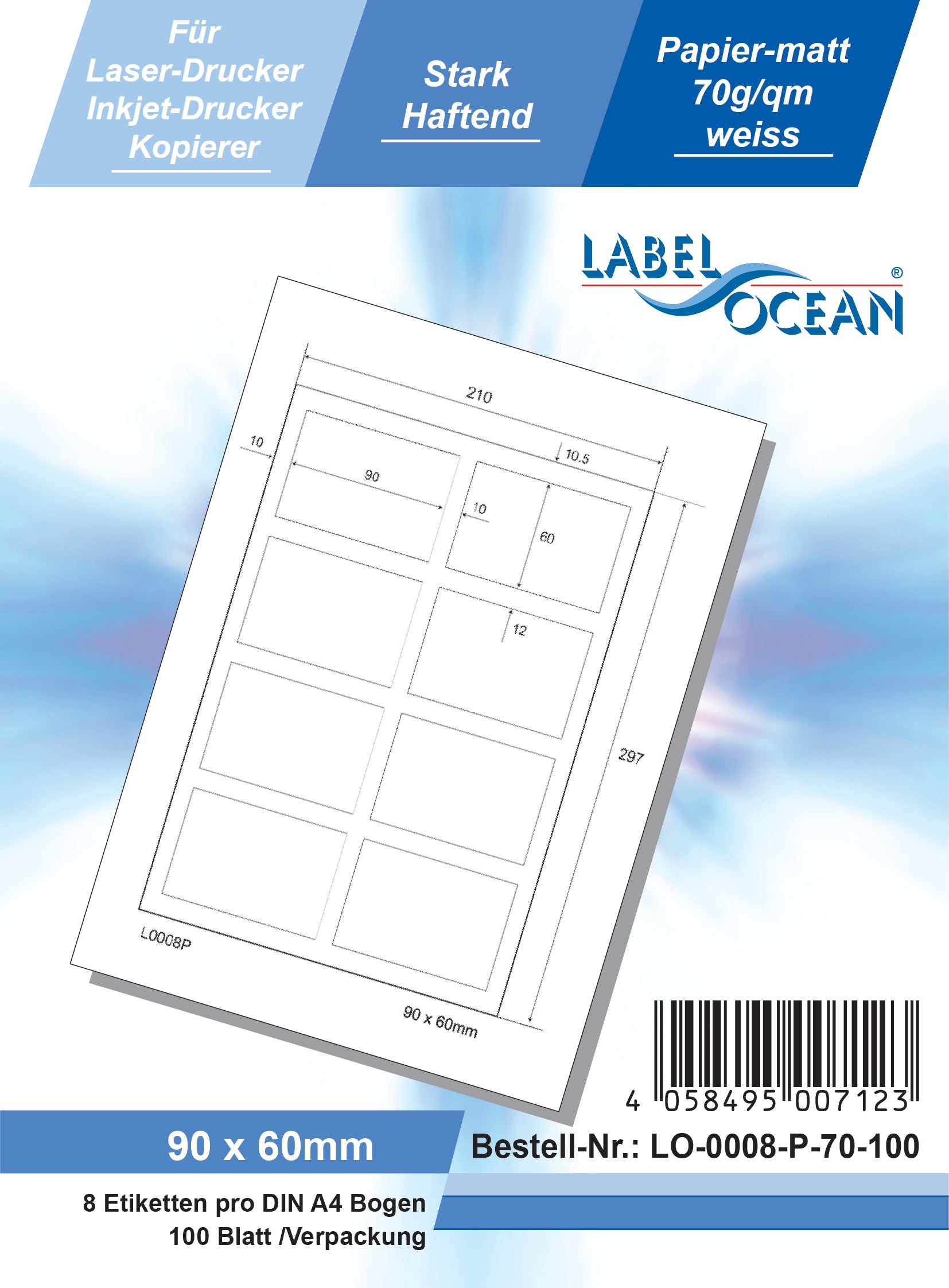 800 Universaletiketten 90x60mm, auf 100 Din A4 Bogen, matt, selbstklebend LO-0008-P-70