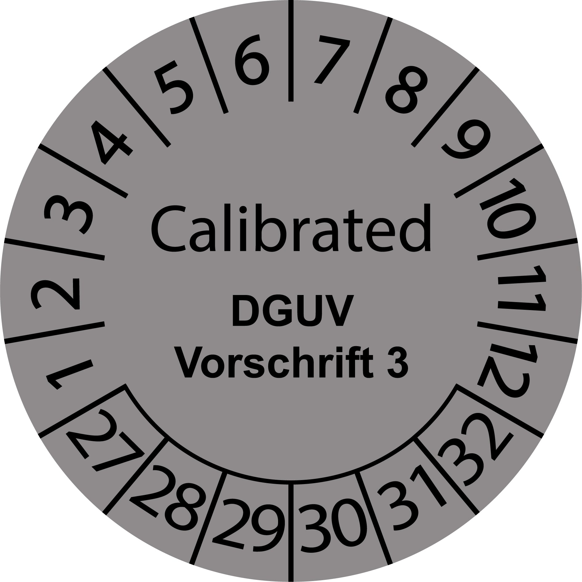 Mehrjahresprüfetiketten, Calibrated, DGUV Vorschrift 3, Startjahr: 2027