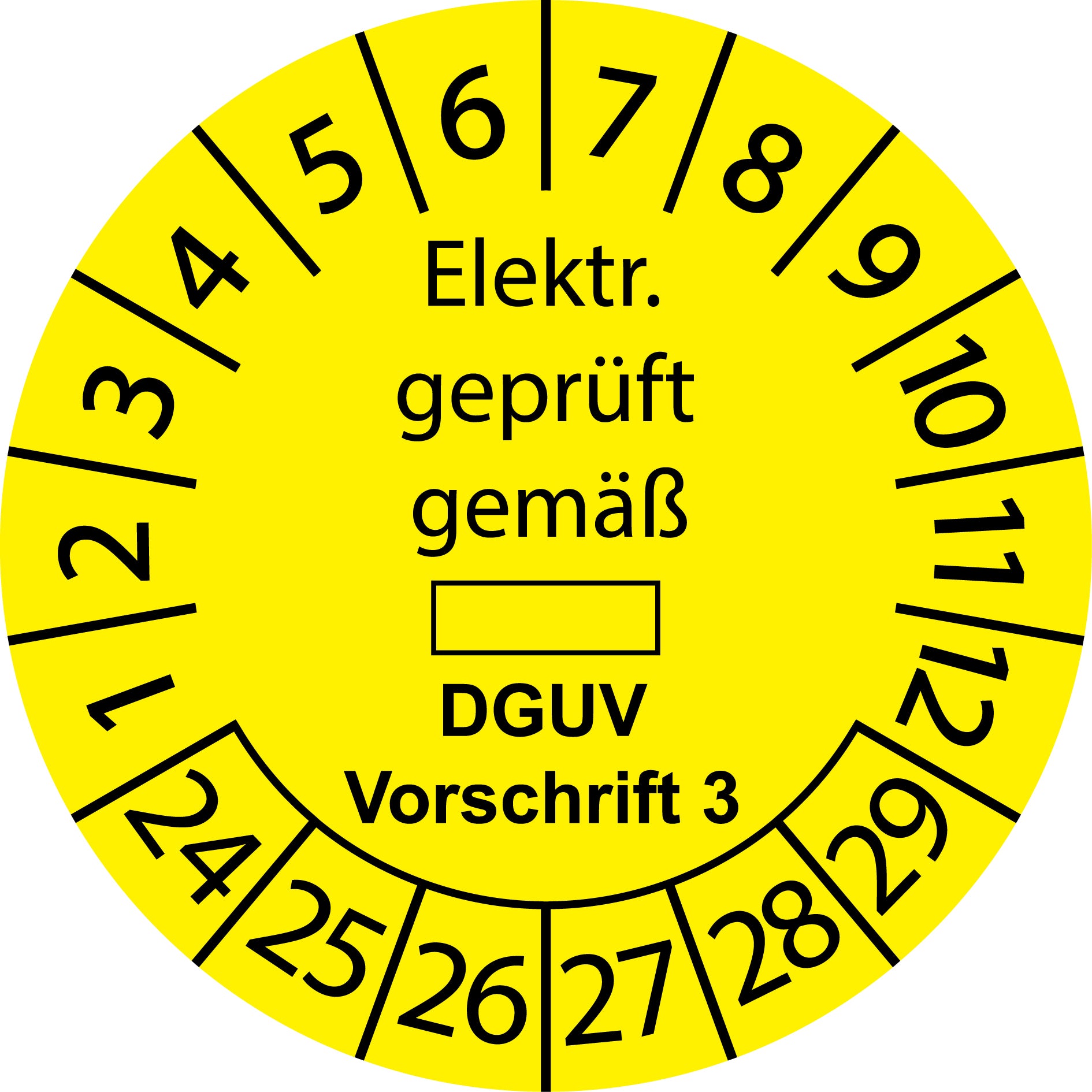 Mehrjahresprüfetiketten, Elektrisch geprüft gemäß ..., DGUV Vorschrift 3, Startjahr: 2024