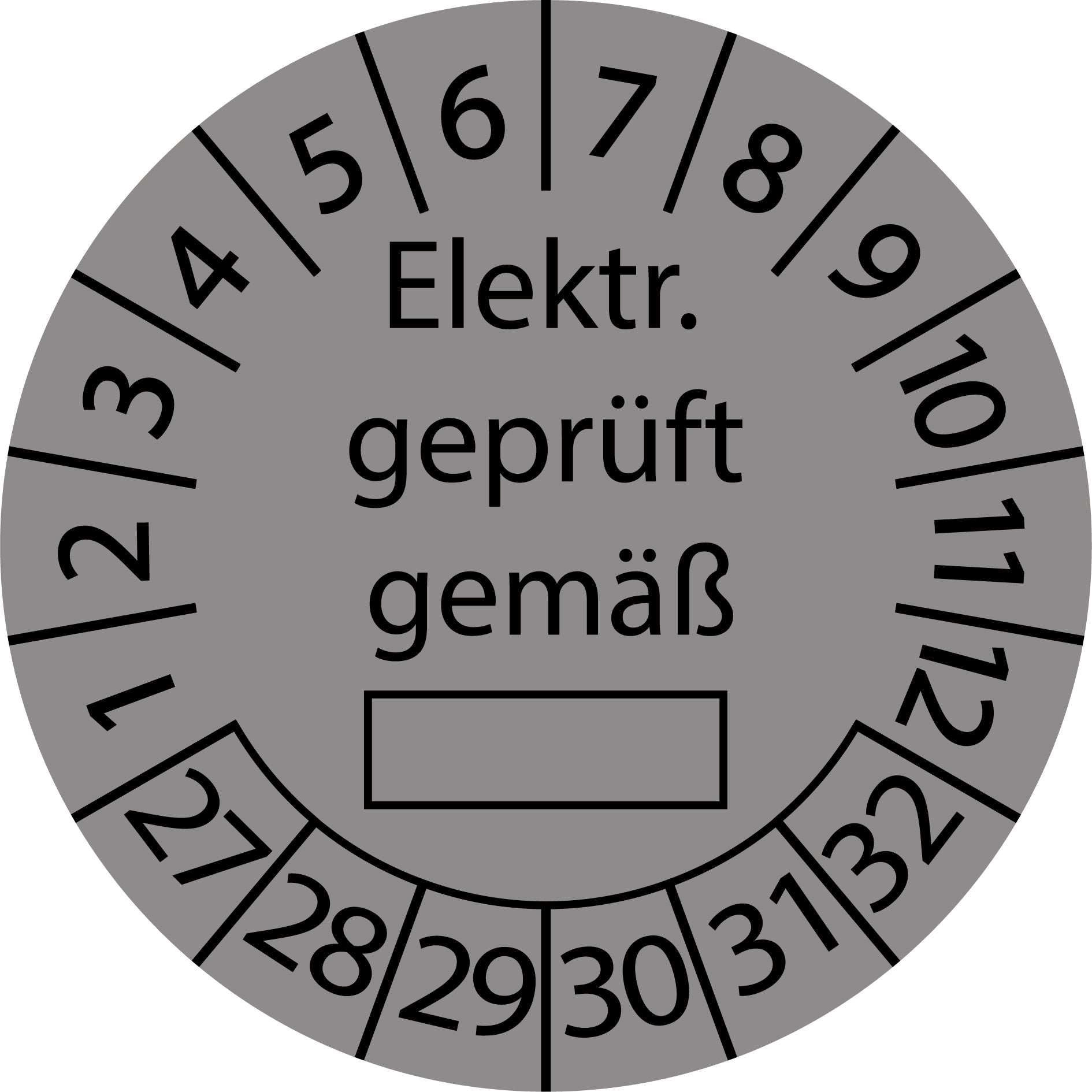 Mehrjahresprüfetiketten, Elektrisch geprüft gemäß ..., Startjahr: 2027