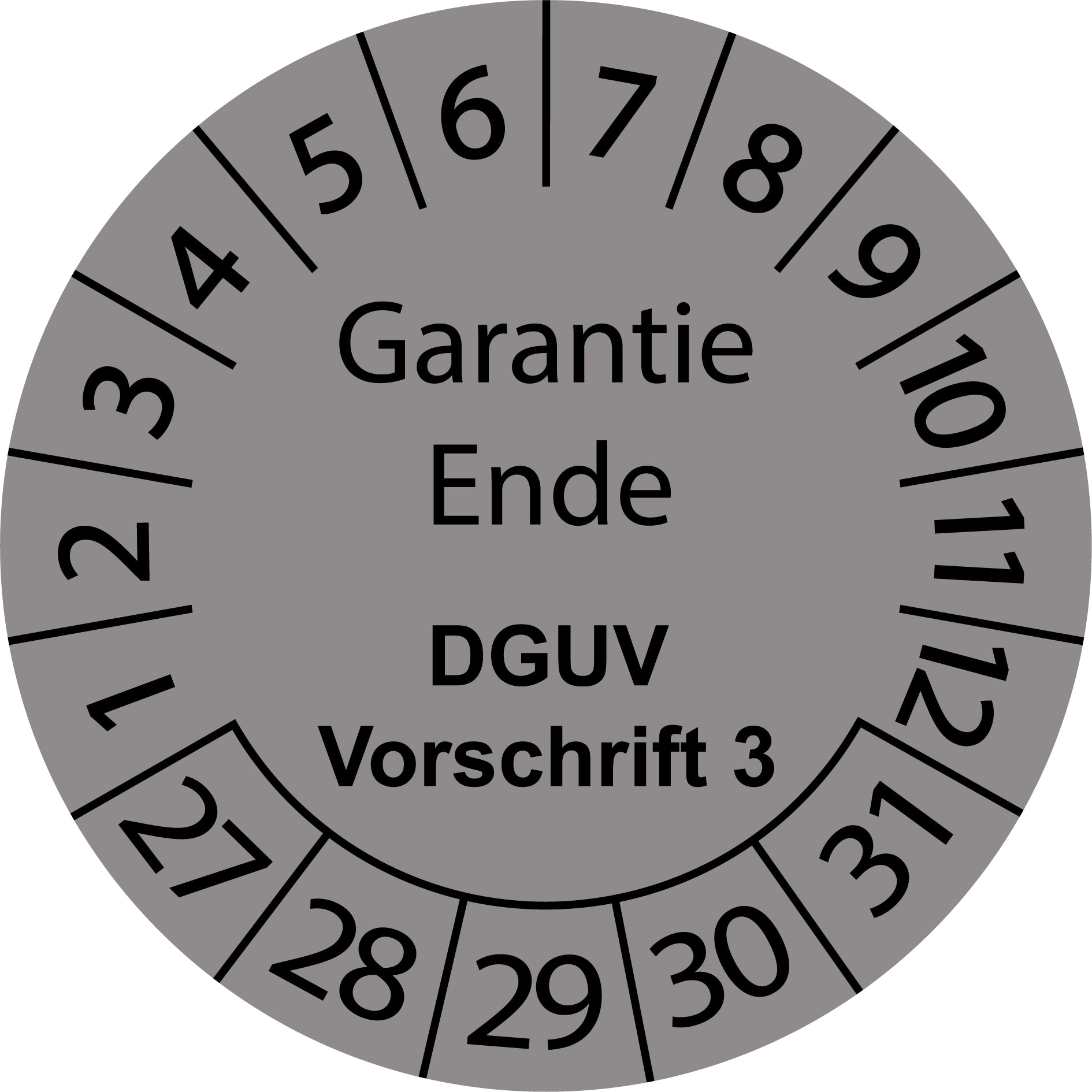 Mehrjahresprüfetiketten, Garantie Ende, DGUV Vorschrift 3, Startjahr: 2027