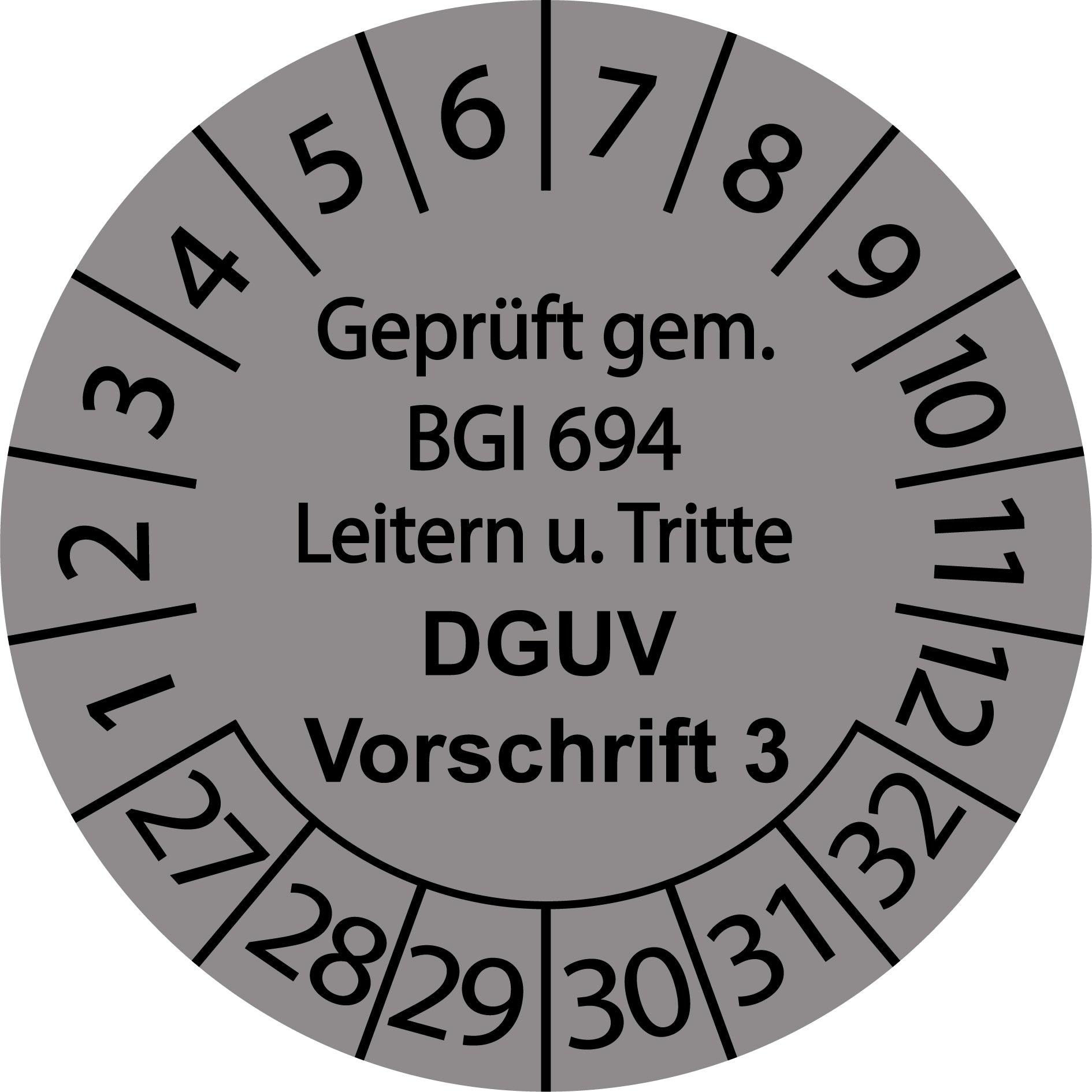 Mehrjahresprüfetiketten, Geprüft gem. BGI 694 Leitern u. Tritte, DGUV Vorschrift, Startjahr: 2027