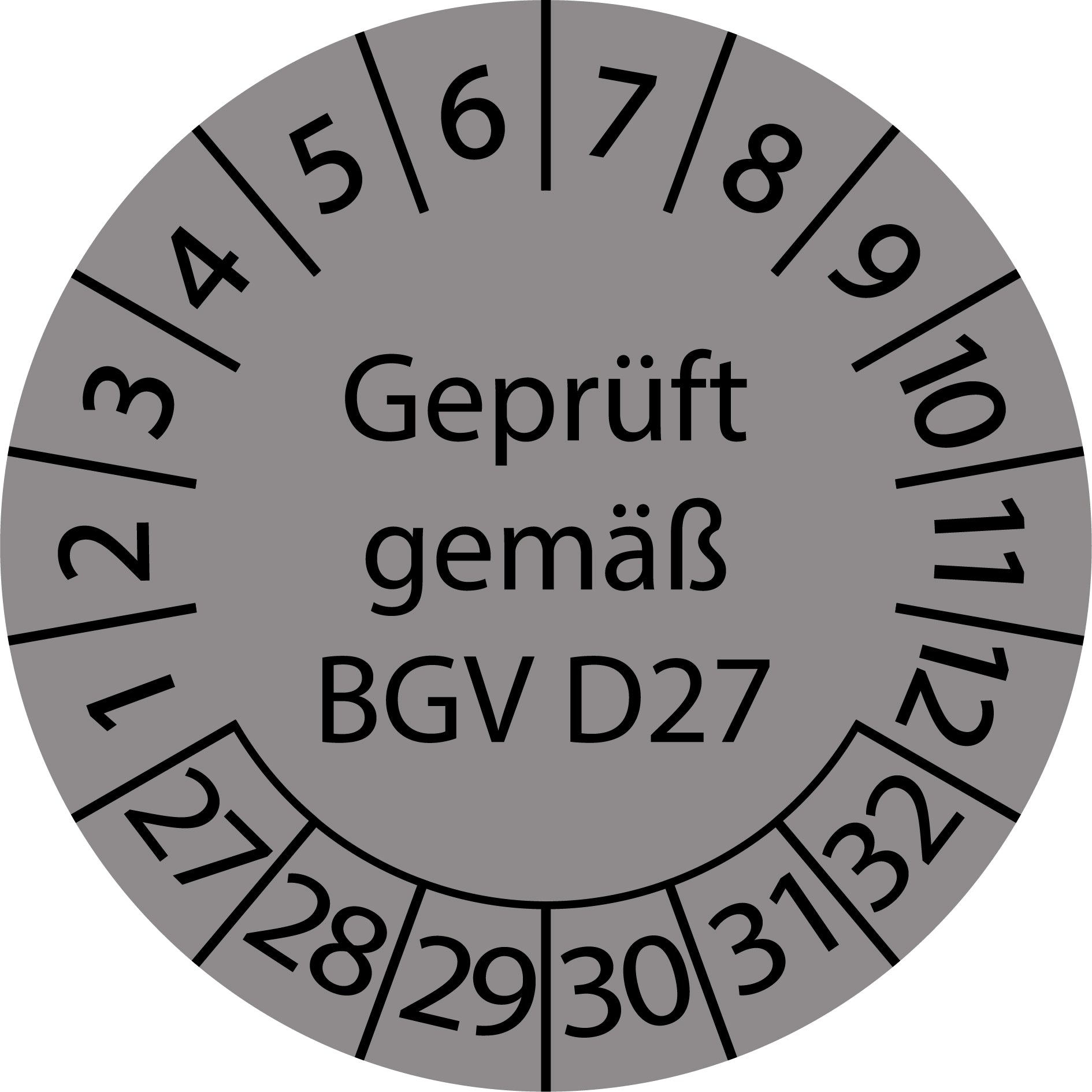 Mehrjahresprüfetiketten, Geprüft gemäß BGV D27, Startjahr: 2027