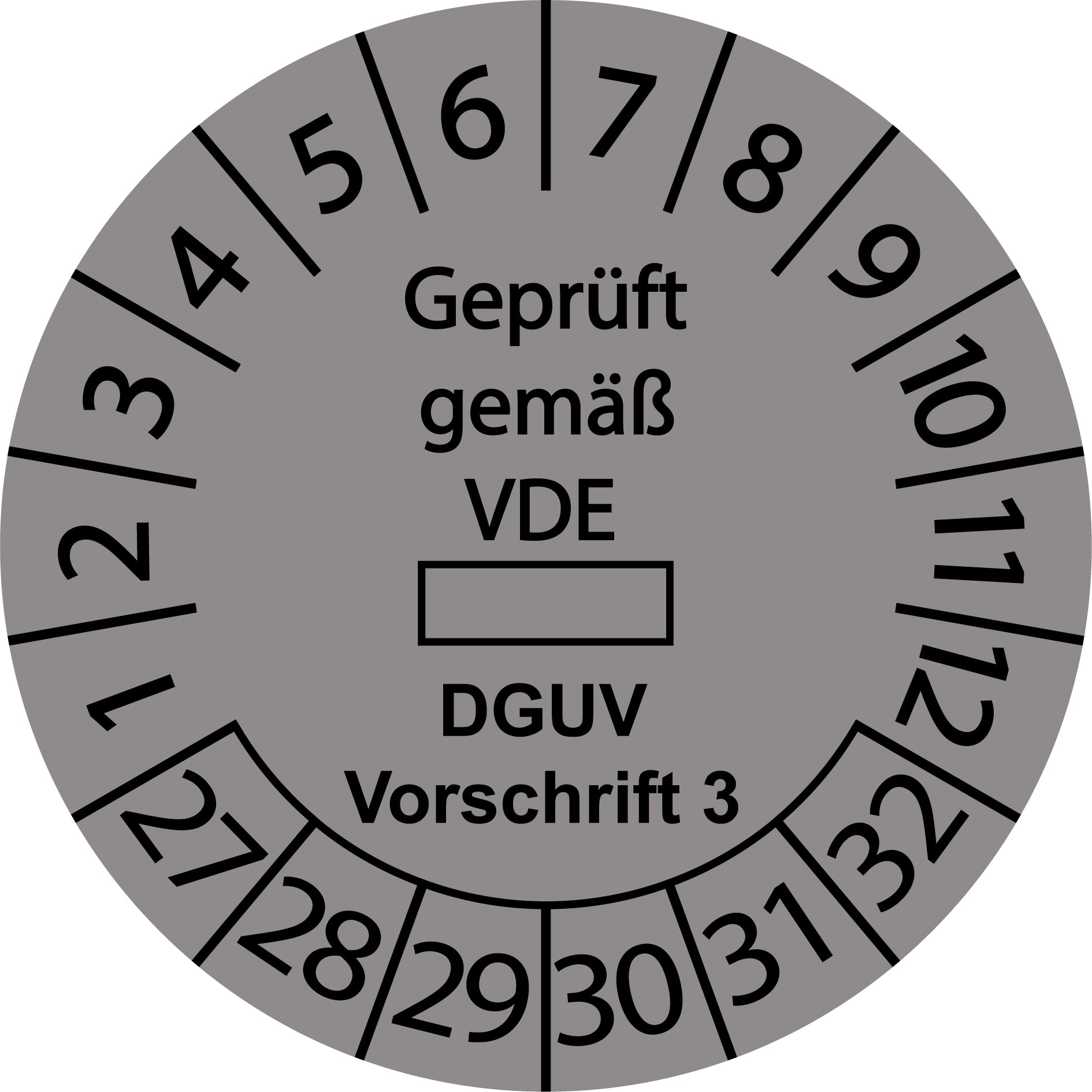 Mehrjahresprüfetiketten, Geprüft gemäß VDE ..., DGUV Vorschrift 3, Startjahr: 2027