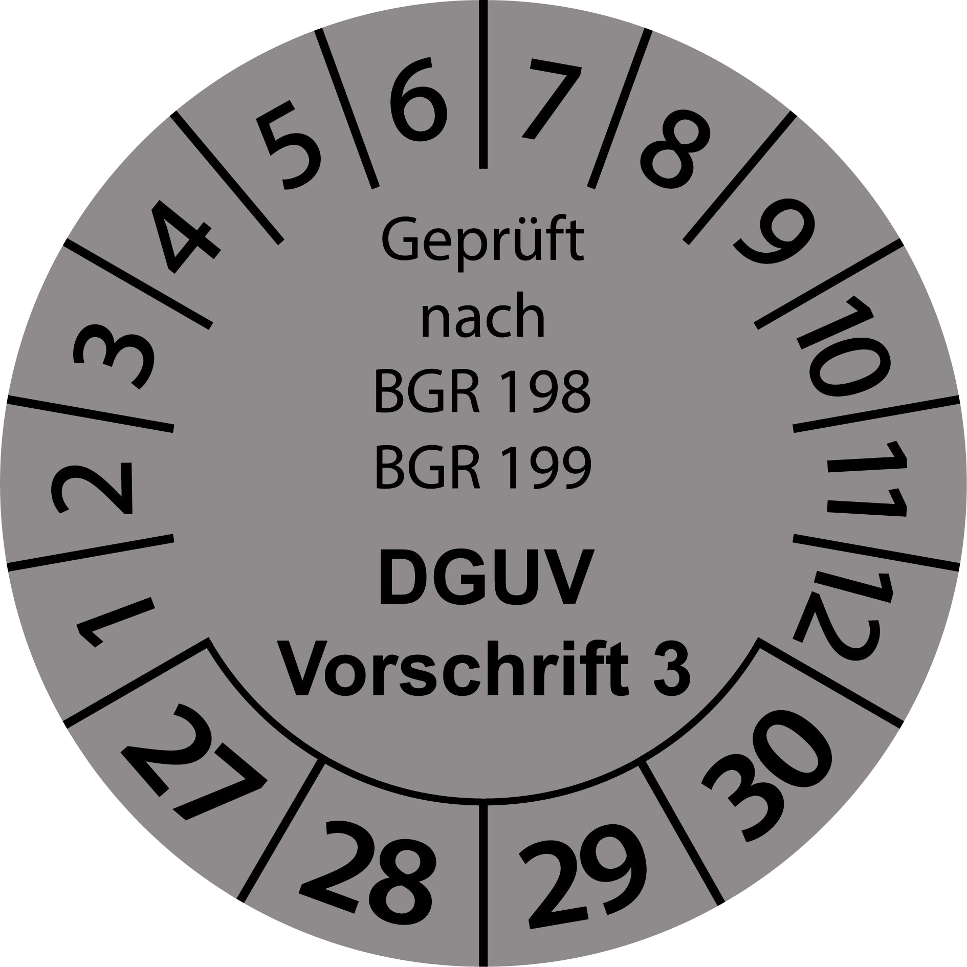 Mehrjahresprüfetiketten, Geprüft nach BGR 198 + 199, DGUV Vorschrift 3, Startjahr: 2027