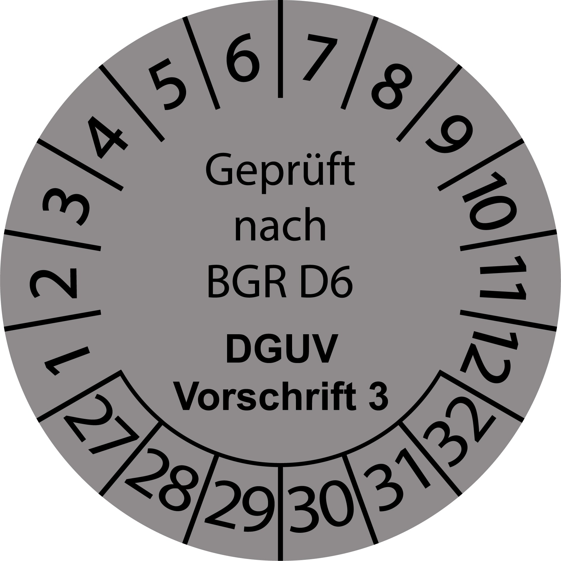 Mehrjahresprüfetiketten, Geprüft nach BGR D6, DGUV Vorschrift 3, Startjahr: 2027