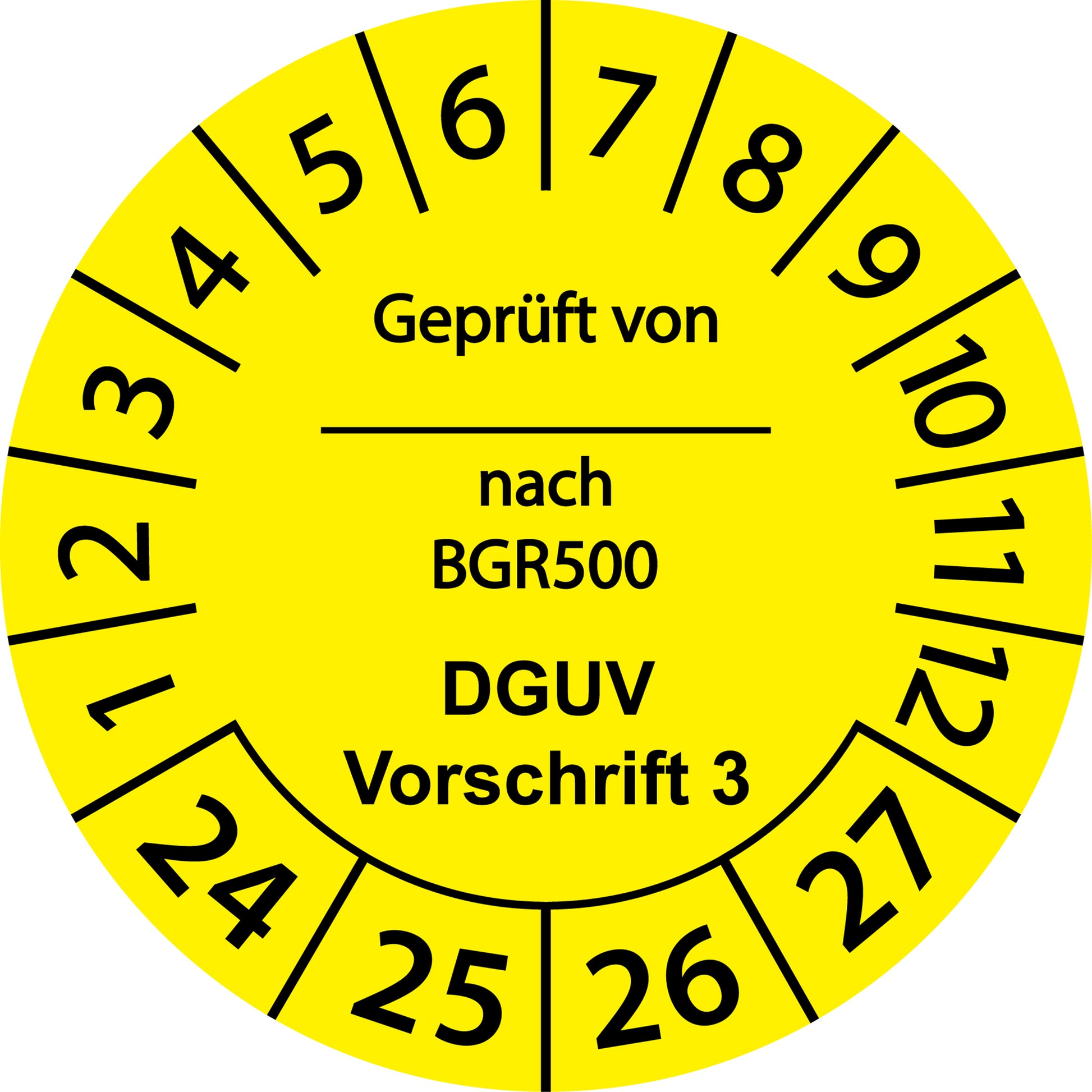 Mehrjahresprüfetiketten, Geprüft von ... nach BGR 500, DGUV Vorschrift 3, Startjahr: 2024
