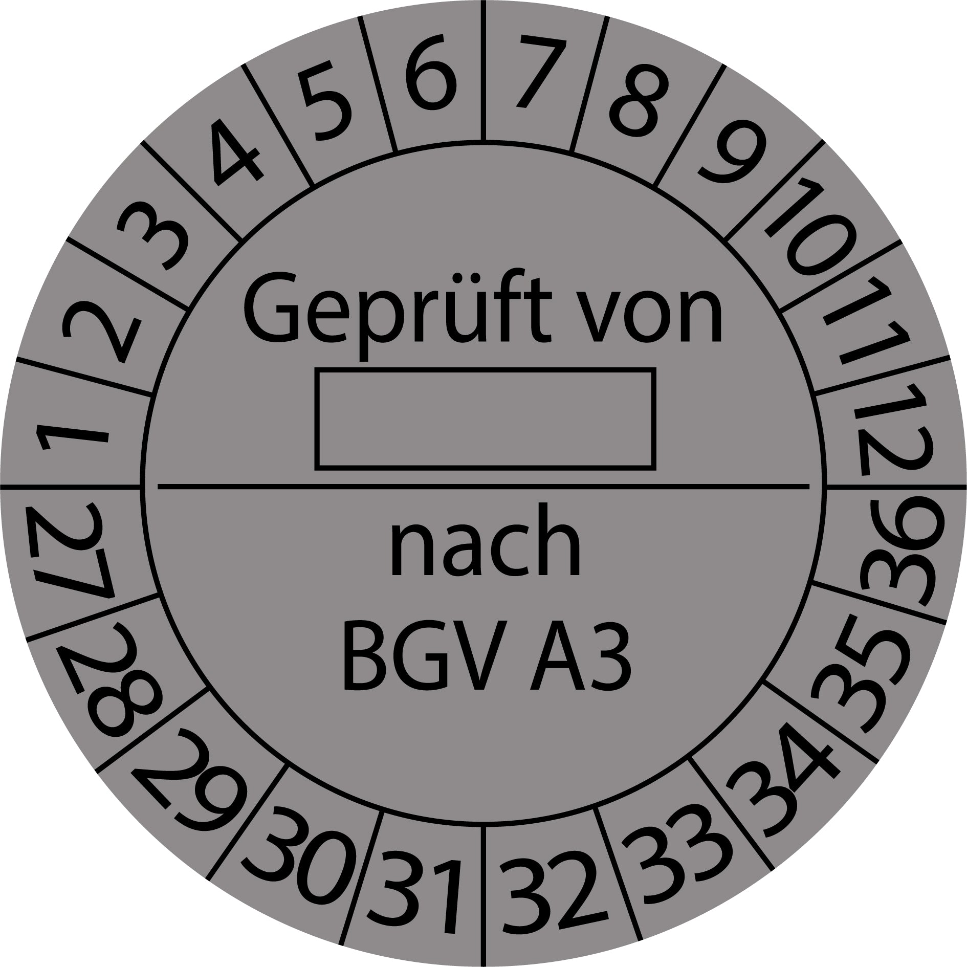Mehrjahresprüfetiketten, Geprüft von ..., nach BGV A3, Startjahr: 2027
