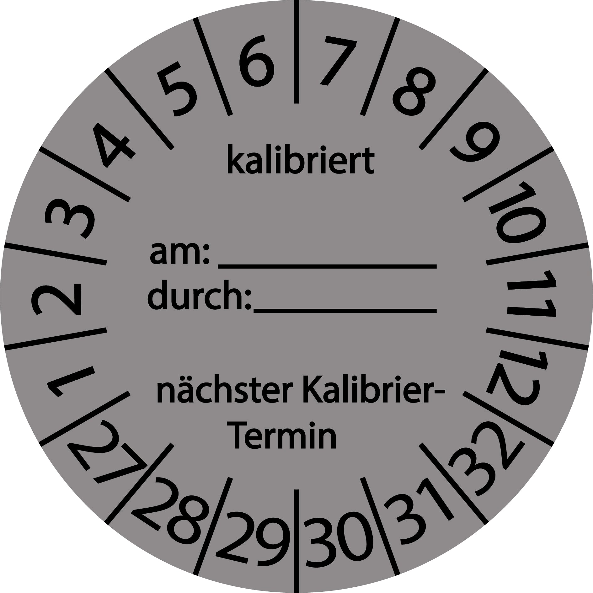 Mehrjahresprüfetiketten, Kalibriert am..., durch..., nächster Termin, Startjahr: 2027