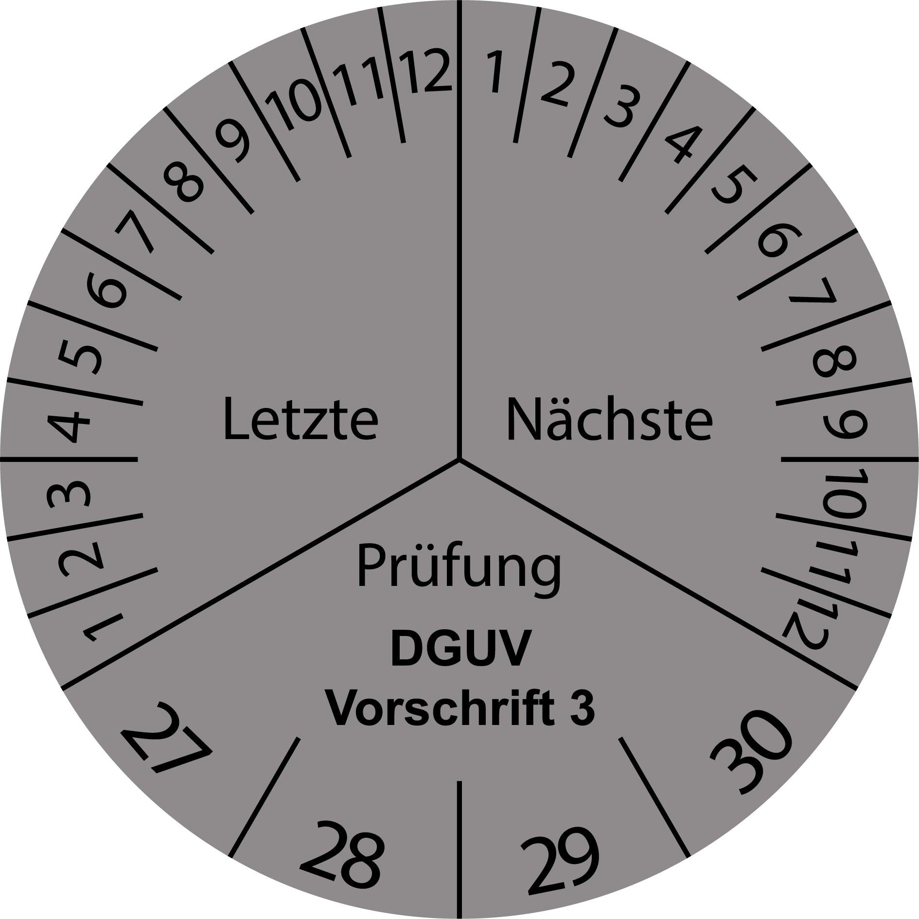 Mehrjahresprüfetiketten, Letzte & Nächste Prüfung, DGUV Vorschrift 3, Startjahr: 2027