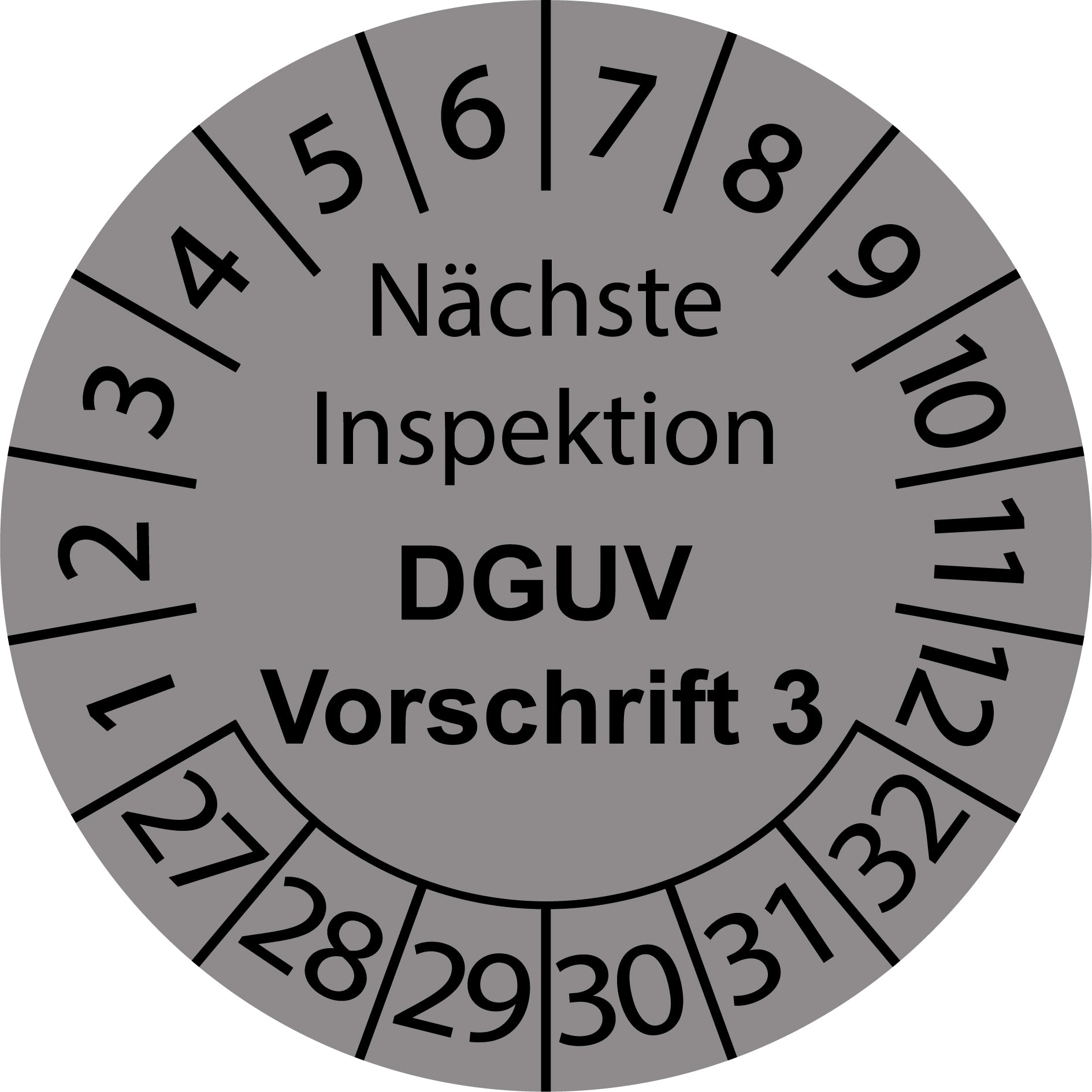 Mehrjahresprüfetiketten, Nächste Inspektion, DGUV Vorschrift 3, Startjahr: 2027