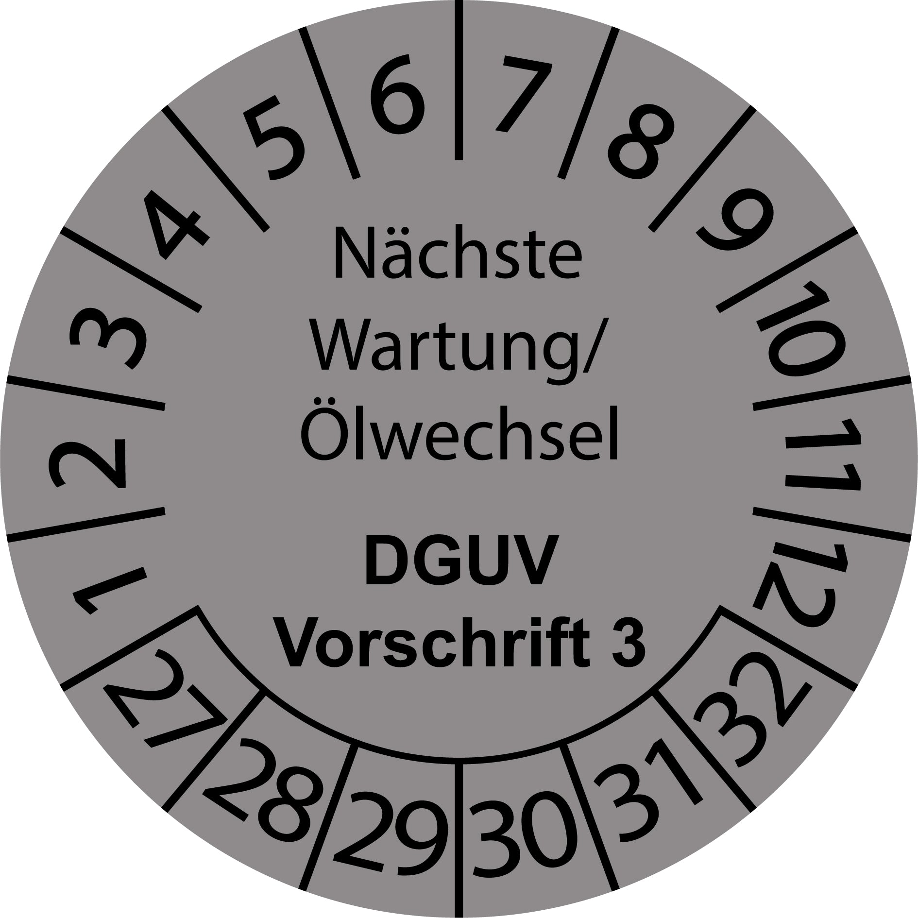 Mehrjahresprüfetiketten, Nächste Wartung/ Ölwechsel, DGUV Vorschrift 3, Startjahr: 2027