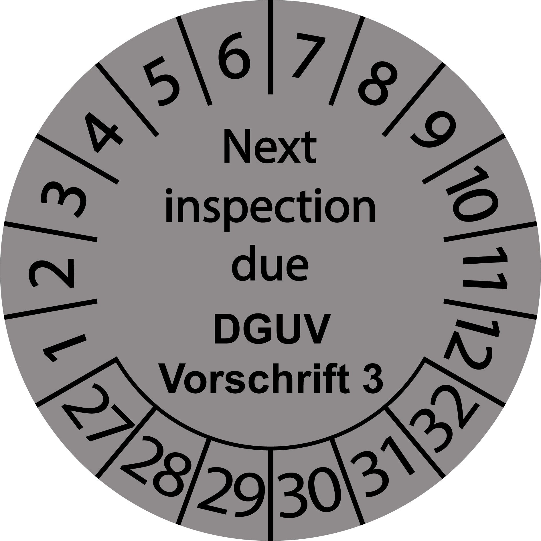 Mehrjahresprüfetiketten, Next inspection due, DGUV Vorschrift 3, Startjahr: 2027