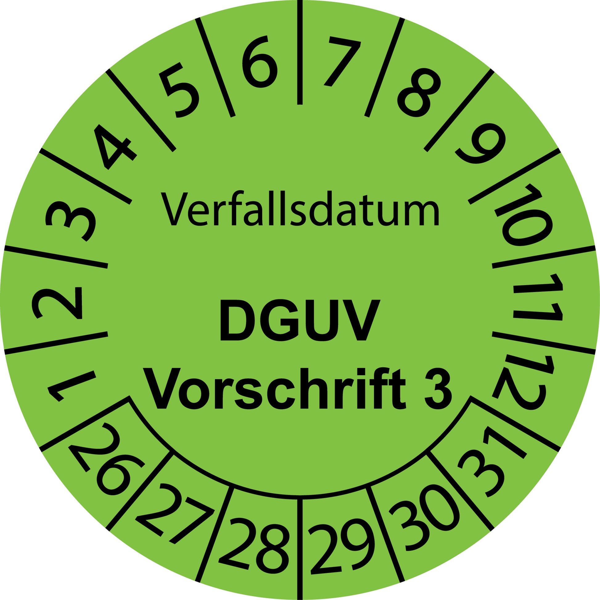 Mehrjahresprüfetiketten, Verfallsdatum, DGUV Vorschrift 3, Startjahr: 2026 aus Papier oder Plastik