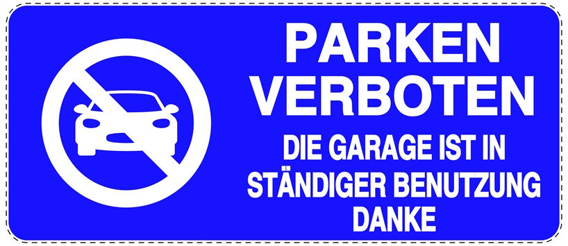 Parken verboten Aufkleber "Parken verboten Die Garage ist in ständiger Benutzung Danke" LO-NPRK-1130-44