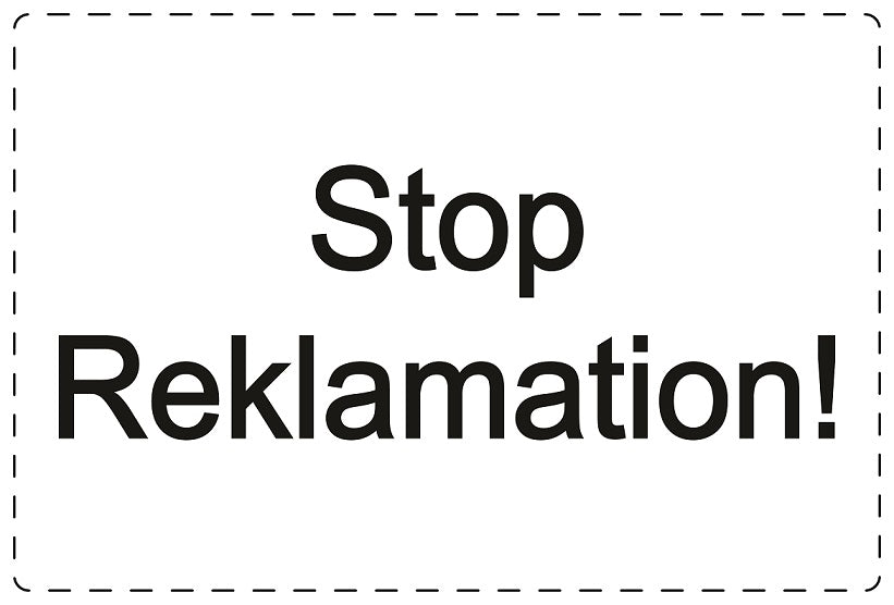 Versandaufkleber "Stop Reklamation!" aus Papier