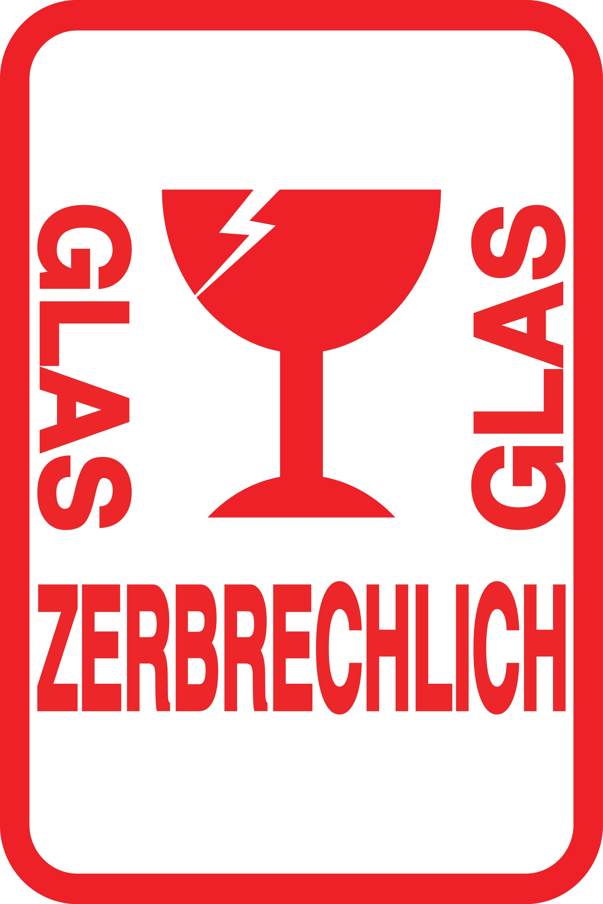 Zerbrechlich - Fragile Aufkleber "GLAS ZERBRECHLICH GLAS" LO-FRAGILE-V-10900-14-0